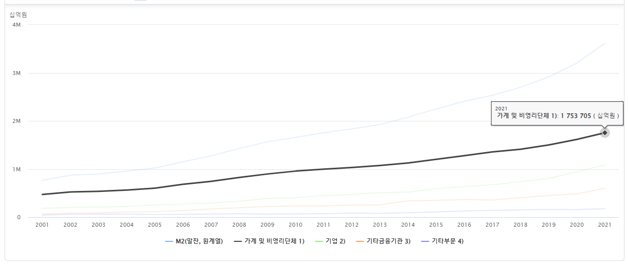정부에서 돈을 막 풀고 있습니다. 달러가 1300원을 뚫고 올라가려고 하니 정부가 개입해서 1250원선까지 환율을 조절 하기도 했고, 소상공인 코로나 지원금으로 수십조를 풀고 있습니다. 그리고 올해 SOC( 사회간접자본 )에 정부가 투자하는 예산이 역대급이라고 들었습니다.