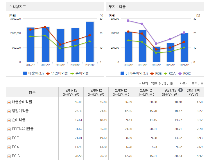 삼성전자는 훨씬 큰 금액으로 저 영업이익률을 계속 달성하고 있는거구요.