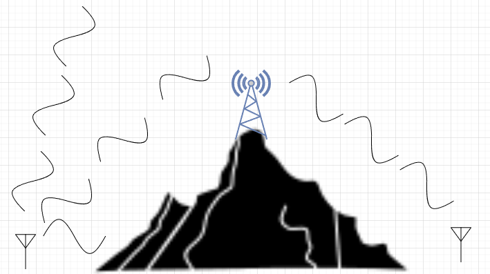 그러다보니 문제가 산이 있어버리면 전파가 산 넘어까지 가지를 못한다. 대략 그림으로 표시하면 이렇다.