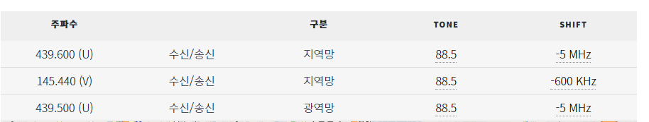 정리하면.. 해당 중계기에서 오는 신호를 받기 위해서는 저 주파수를 맞추면 되고, 저 중계기에 신호를 쏘기 위해서는 톤과 쉬프트를 모두 설정해야한다.