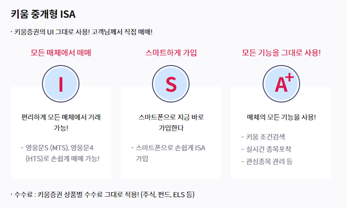 저는 키움증권에서 중개형으로 개설을 했습니다. ISA 계좌는 중개형이랑 일임형이 존재합니다.