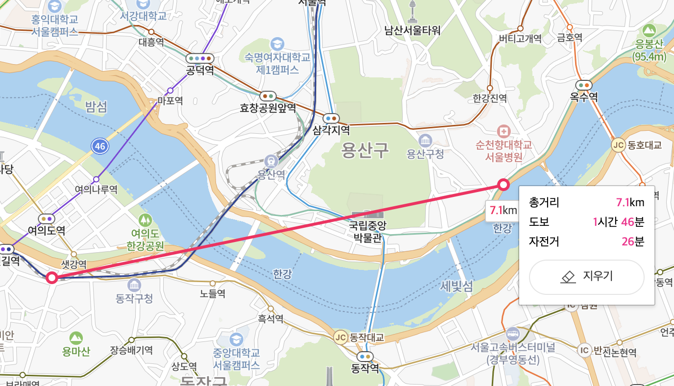 교신이 최종 끊어질때 그 분이 거의 한남대교 다와간다고 했는데, 지도로 찍어보니 대충 7km .. 도심에서 7km 면 상당히 선방한 것 같다.