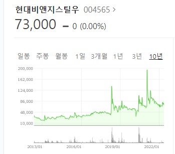 정유 업계가 저 당시에 워낙 저유가로 힘들었으니.. 그렇다 치고.. 좀 다른 종목.. 비앤지스틸우를 봅시다. 당시 23100원이었구요.