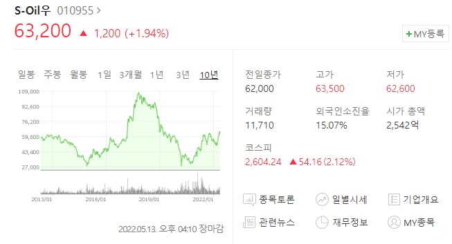 S-Oil우 를 먼저 살펴봅시다. 2012년 당시에 58000원 대였네요.