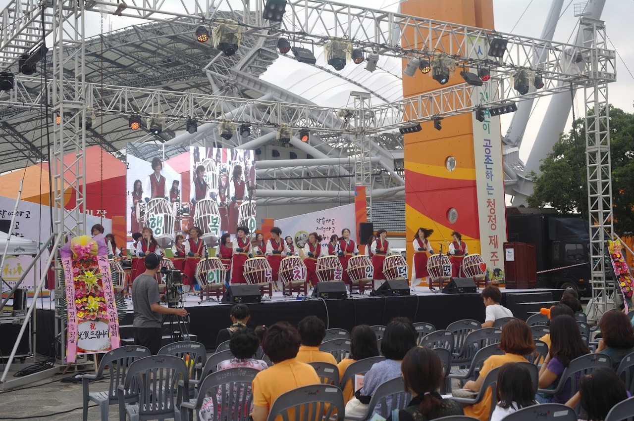 제주의 마을 축제들의 특징은...일단 생각보다 규모가 크다. 듣기로 관련 예산이 따로 나온다고 한다. 그리고 바로 위 사진 같은 공연 무대가 있을 때 지역민들의 참여가 엄청 활발하다. 무슨 주부회나 학생들이 연주나 공연 등을 하는데, 뭔가 참 적극적으로 참여한다는 느낌을 받았다.