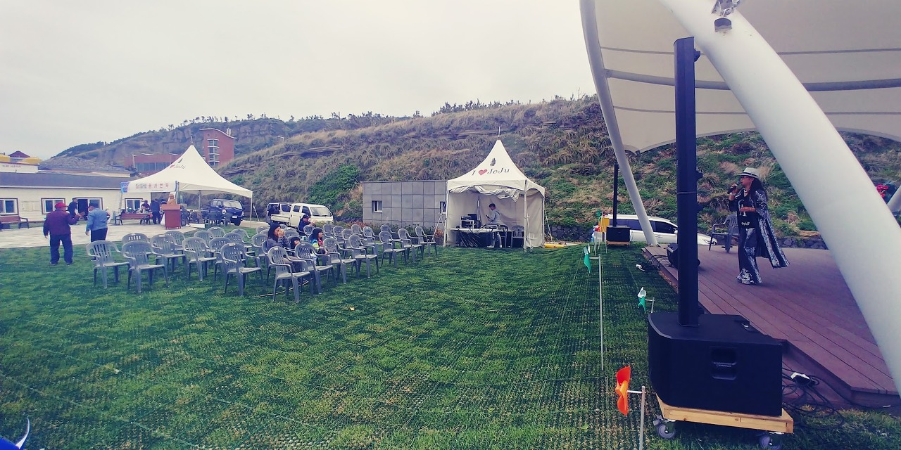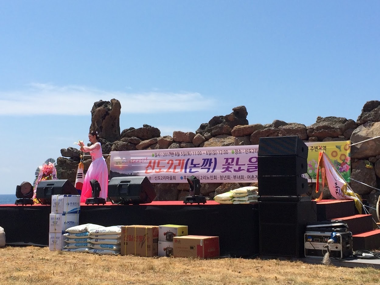 제주의 마을 축제들의 특징은...일단 생각보다 규모가 크다. 듣기로 관련 예산이 따로 나온다고 한다. 그리고 바로 위 사진 같은 공연 무대가 있을 때 지역민들의 참여가 엄청 활발하다. 무슨 주부회나 학생들이 연주나 공연 등을 하는데, 뭔가 참 적극적으로 참여한다는 느낌을 받았다.